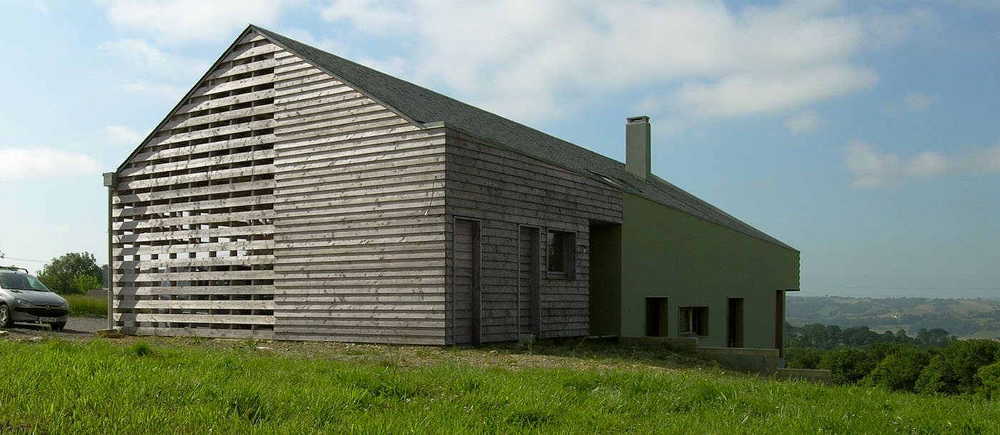 | Travaux: | maçonnerie, ossature bois, menuiserie bois, isolation renforcée RT+20% |