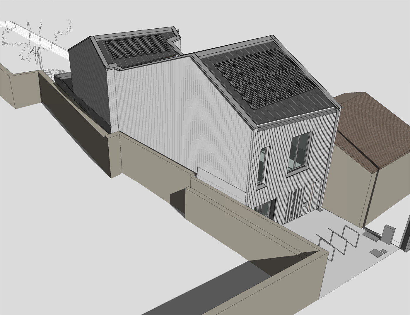 | ossature bois, panneaux photovoltaique, bardage bois. | |