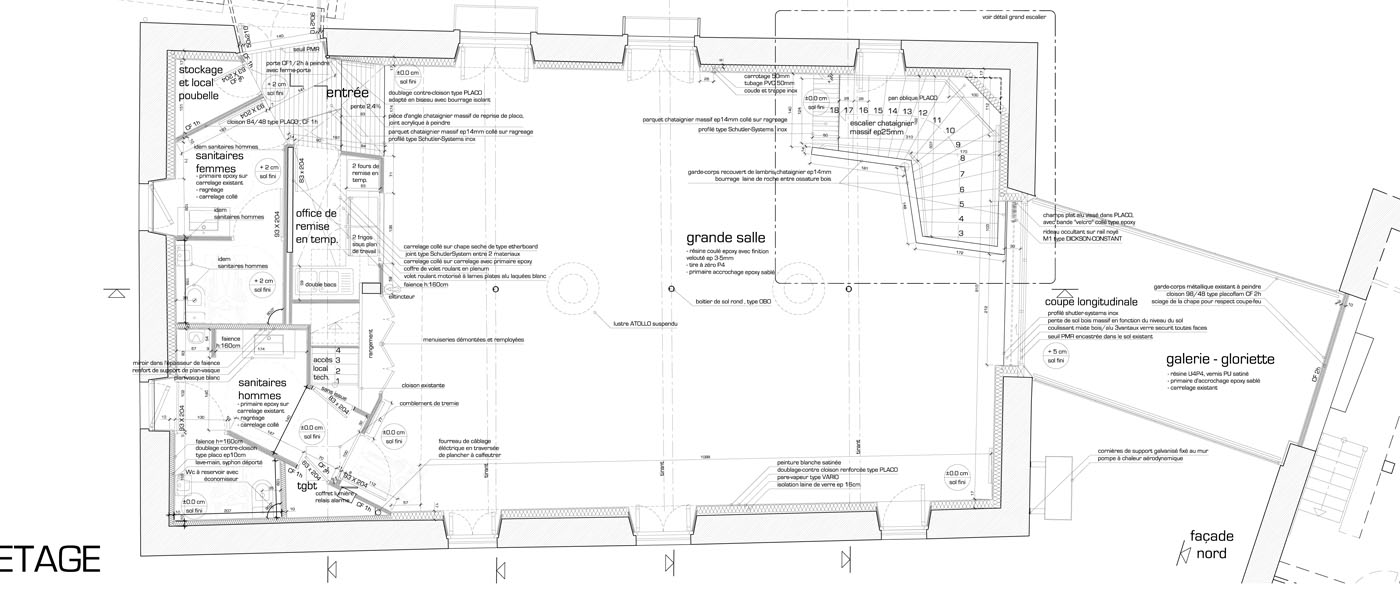 L'inondabilité intégrale du RDC, aléa 4 du PPRI, impose des matériaux bruts permettant l’évacuation rapide de l'eau. Un échange constant avec la ville et le bureau de contrôle s'est donc imposé afin d’établir le plus juste compromis entre normes et besoins.